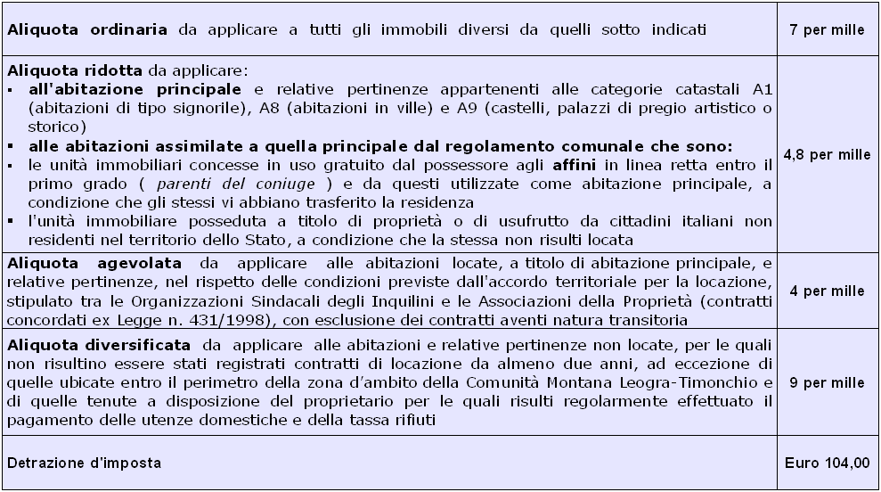 Aliquote anno 2011 (per gli immobili diversi dall'abitazione principale e ad essa assimilati)