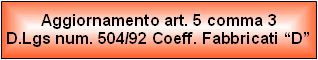 Aggiornamento dei Coefficienti per la determinazione del valore dei Fabbricati "D"